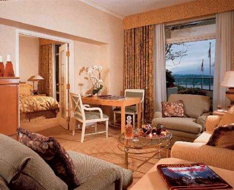 The Fairmont Waterfront, открытый в 1991 году, расположен на берегу живописного залива, окаймленного величественными горами, в центре Ванкувера, рядом с Выставочным Центром и терминалом круизных теплоходов, с которыми отель соединен крытыми переходами. Внутреннее убранство The Fairmont Waterfront отличается утонченным великолепием: монументальные мраморные колонны и мраморные полы, мягкое освещение, пышные растения, хрустальные люстры, дорогие ковры. В номерах, оборудованных по последнему слову техники, - элегантные классические интерьеры в теплых насыщенных оттенках, с ковровым покрытием на полах, изящной мебелью, красиво драпированными шторами из тканей изысканных расцветок и покрывалами в тон, панорамными окнами с великолепным видом на город, залив и горы.